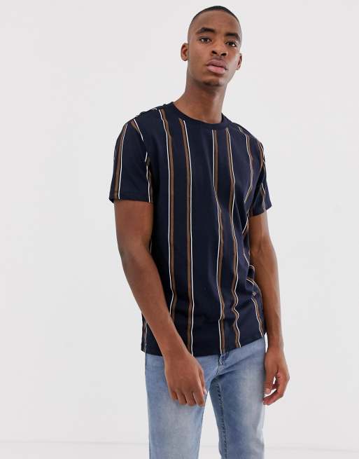 Camiseta Con Rayas Verticales En Azul Marino De Bershka Asos