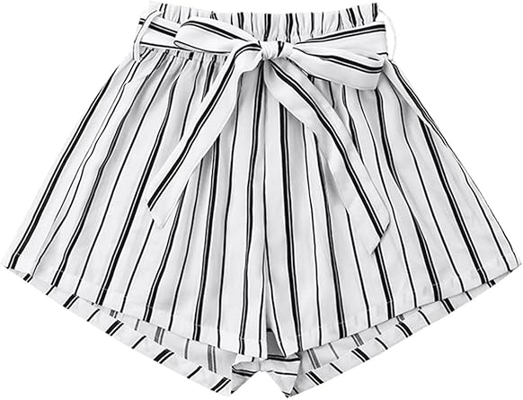 Zaful Women S Casual Elastic Waist Striped Summer Shorts With Belt