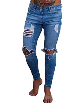 Vaqueros Rotos Hombre Slim Fit Jeans Rodilla Destruido Pantalones