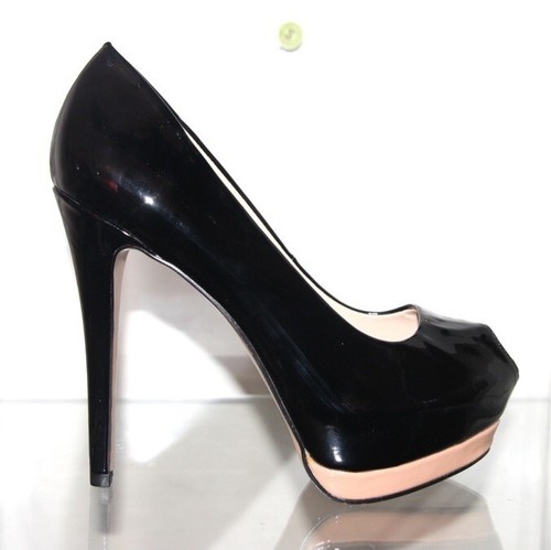 39 Primadonna Decollete Open Toe Plateau Nero Vernice Sexy Tacco