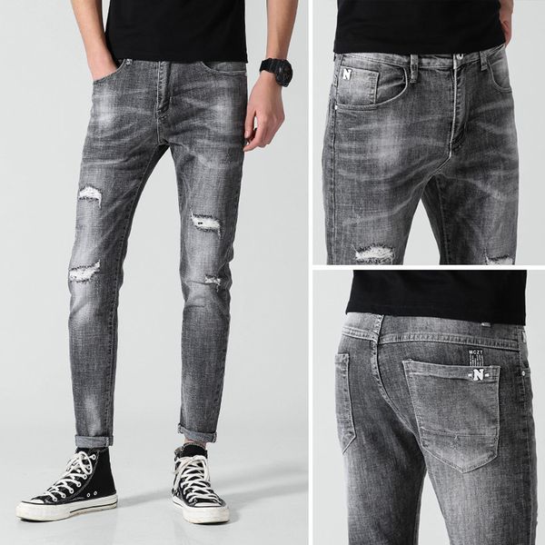 Top Quality 2020 Fashion Casual Knee Hole Black Skinny Jeans Men
